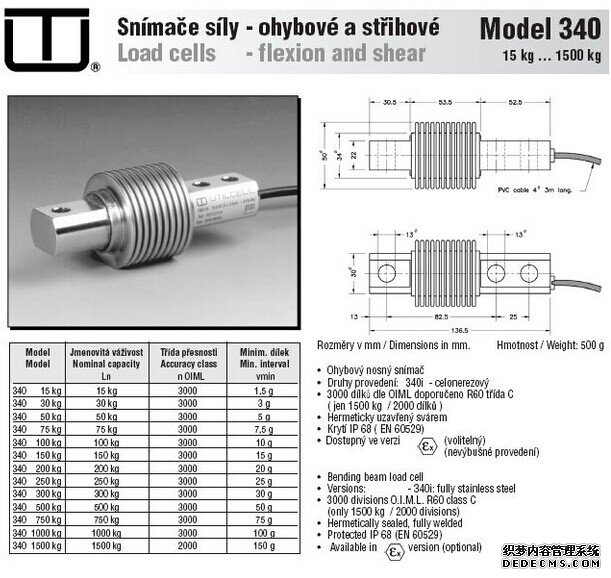 西班牙尤梯爾稱重傳感器MOD340-50kg技術(shù)參數(shù):