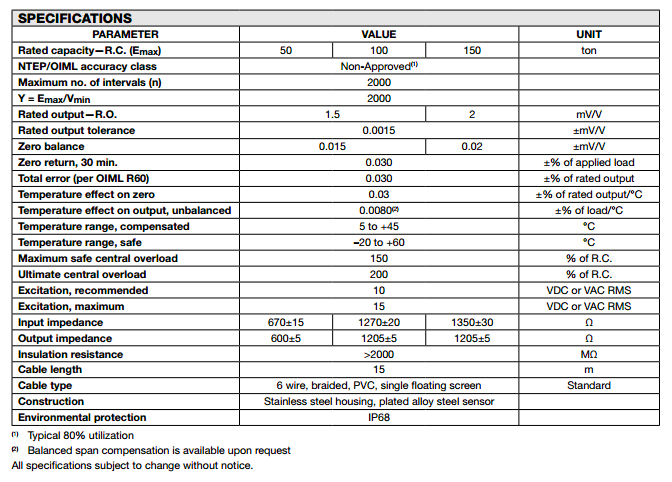 Tedea 122-150t稱重傳感器YAU廣州南創(chuàng)電子科技有限公司