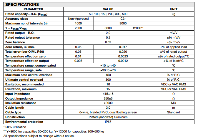 美國特迪亞tedea 614稱重傳感器系列所有量程如下:qiz廣州南創(chuàng)電子科技有限公司