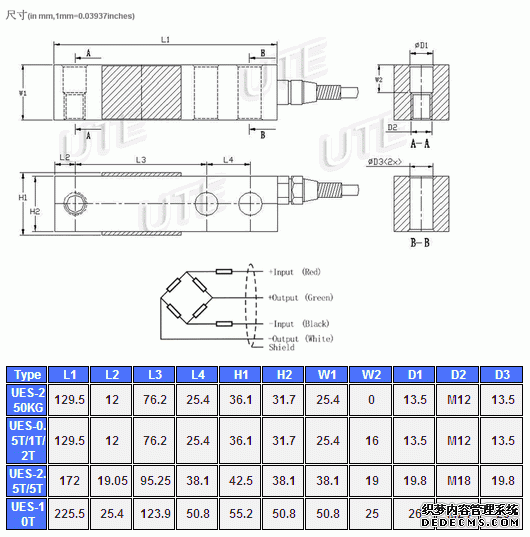臺(tái)灣UTE UES系列稱(chēng)重傳感器產(chǎn)品參數(shù)圖:1bF廣州南創(chuàng)電子科技有限公司