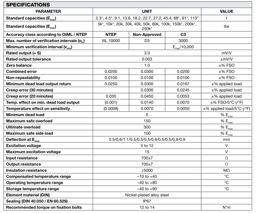 84152: DEB 9223-B10-100k 100000 lb 40 ft RTI 3mv/v 700 Ohm WW NTEP IIIL 10 M FM SST aXi廣州南創(chuàng)電子科技有限公司