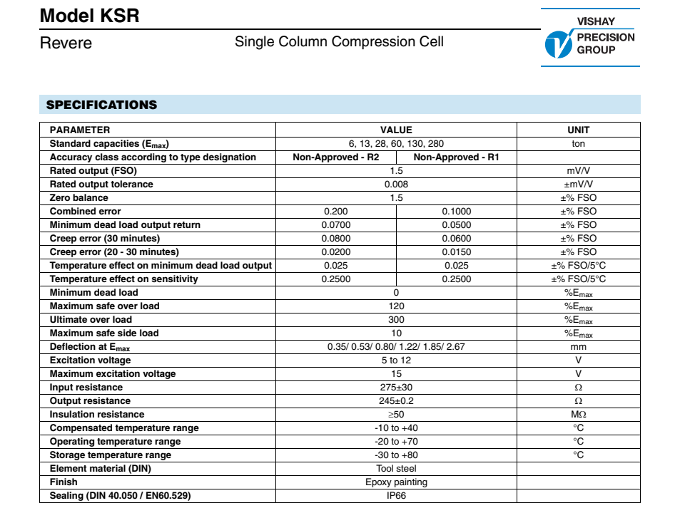 美國vishay Revere稱重傳感器KSR-6t產(chǎn)品技術參數(shù):xXu廣州南創(chuàng)電子科技有限公司