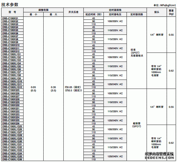 日本鷺宮ONS型油壓保護(hù)用壓差控制器技術(shù)參數(shù)圖:CTH廣州南創(chuàng)電子科技有限公司