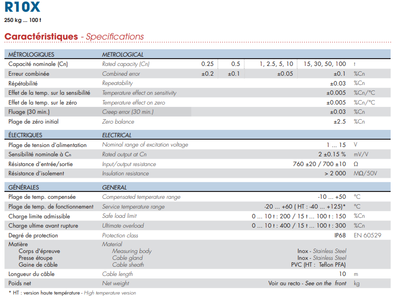 法國SCAIME R10X-250KG稱重傳感器,由不銹鋼制成, 密封焊接至防護等級 IP68rdg廣州南創(chuàng)電子科技有限公司
