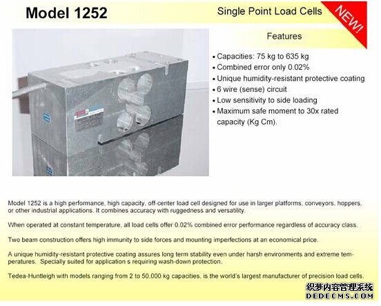 美國特迪亞1252-100kg傳感器特性:zLC廣州南創(chuàng)電子科技有限公司