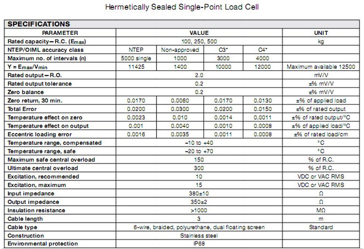 美國tedea 1510-500kg稱重傳感器系列稱重傳感器所有量程如下:f9G廣州南創(chuàng)電子科技有限公司