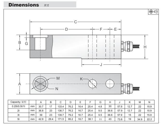量程:250kg, 500kg, 1000kg, 2000kg, 3000kg, 5000kgNuu廣州南創(chuàng)電子科技有限公司