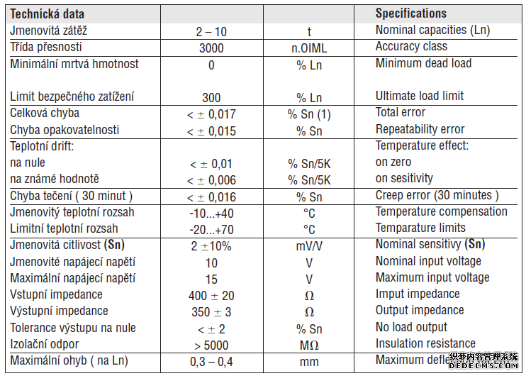 最大偏差(at Ln):尤梯爾 MOD540稱(chēng)重傳感器 qqn廣州南創(chuàng)電子科技有限公司