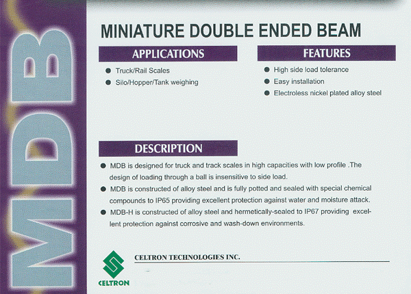 Celtron MDB雙剪切梁式稱重傳感器專為卡車和鐵路的低配置高容量規(guī)模設(shè)計。在裝載過程中不易受負載影響。b7r廣州南創(chuàng)電子科技有限公司