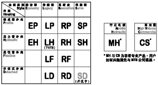 MTS位移傳感器型號(hào)對(duì)照表 MTS已成功開(kāi)發(fā)三代傳感器,第三代基本分為4個(gè)系列,即價(jià)格相宜的經(jīng)濟(jì)型E系列,取代傳統(tǒng)T1和T2型的L系列,為滿足高性能和高精度要求的R系列(曾定名為T(mén)3系列)和把伺服控制器加進(jìn)傳感器的S系列,而這4個(gè)系列又同時(shí)為用戶提供不同類型的外殼設(shè)計(jì)以符合不同場(chǎng)合的應(yīng)用,同樣分為4類,即以雞鴨成型鋁外殼的P型,能承受高壓力的不銹鋼外管的H型,外管柔軟的F型和把電子頭與測(cè)桿分體的D型。 以下是簡(jiǎn)單的產(chǎn)品型號(hào)對(duì)照表,供用戶參考: ![]() |