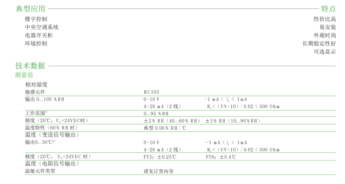 奧地利E+E全系列溫濕度傳感器, 暖通空調(diào)用室內(nèi)溫濕度變送器 , 系列溫濕度變送器專(zhuān)為暖通空調(diào)領(lǐng)域溫濕度測(cè)量而設(shè)計(jì),適用于商業(yè)樓宇和常規(guī)建筑的BA系統(tǒng)。變送器采用 E+E高品質(zhì)的 HC103 濕敏元件,測(cè)量精度高。變送器外型設(shè)計(jì)美觀,安裝簡(jiǎn)便。濕度輸出信號(hào)為標(biāo)準(zhǔn)4-20mA或0-10VDC信號(hào),溫度輸出可選擇4-20mA或0-10VDC的標(biāo)準(zhǔn)信號(hào)或電阻輸出信號(hào)。系列有兩晶顯示模塊用以現(xiàn)場(chǎng)的溫濕度顯示。種外型設(shè)計(jì)以滿(mǎn)足不同地區(qū)標(biāo)準(zhǔn),且所有產(chǎn)品都可以配置清晰的液25.7。TZm廣州南創(chuàng)電子科技有限公司