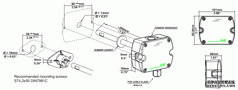 奧地利E+E EE850系列CO2變送器產(chǎn)品尺寸圖:QI7廣州南創(chuàng)電子科技有限公司