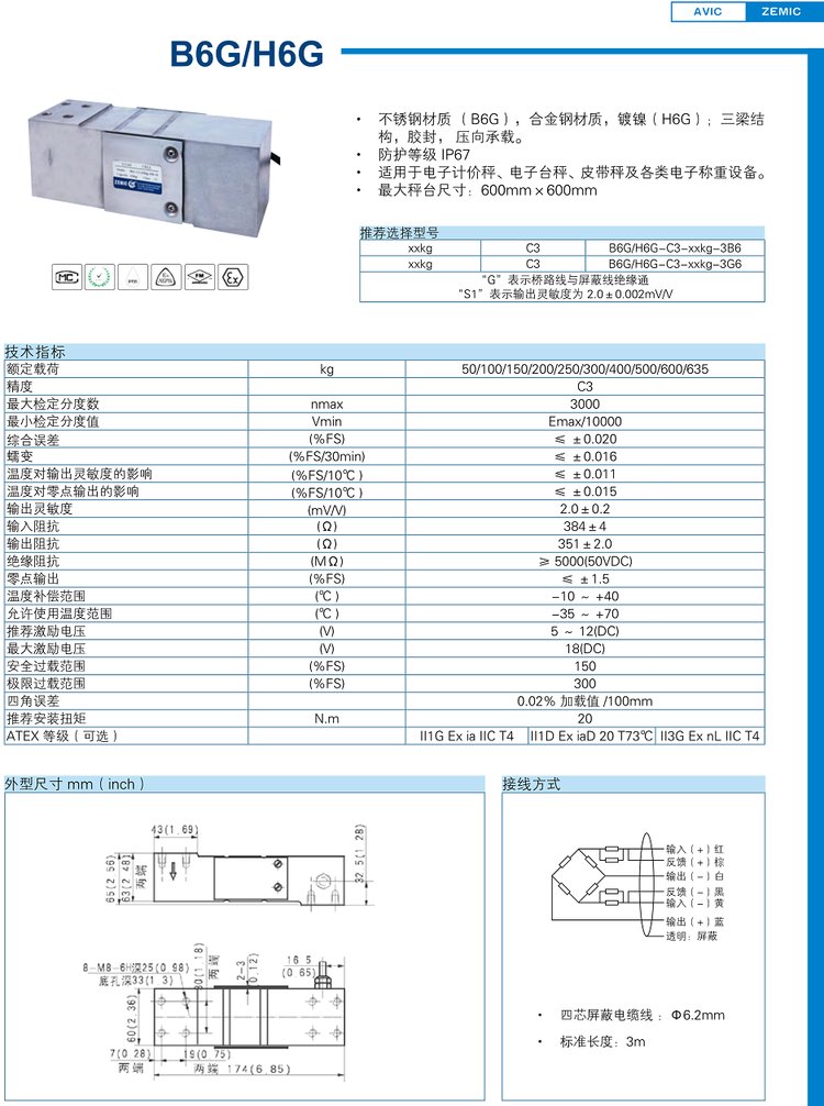 B6G-C3-50kg/100kg/150kg/200kg-3B6 ZEMIC中航電測(cè)稱重傳感器